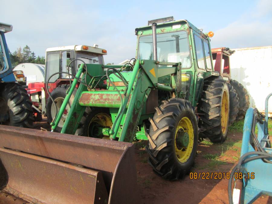 2550 JD, 4WD, cab, 245 self level loader, 15.5 x 38 tires & 13.6 x 24 tires, 12,000HRS, 1985, works good, has hi/low shift, 65HP, no HST, will sell loader or other parts, sold front end, NOW JUNKING