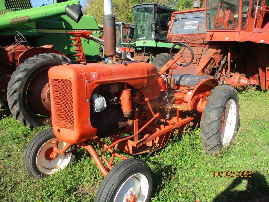 Allis B gas tractor with mid mount hay mower, works good, has a starter
