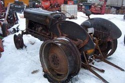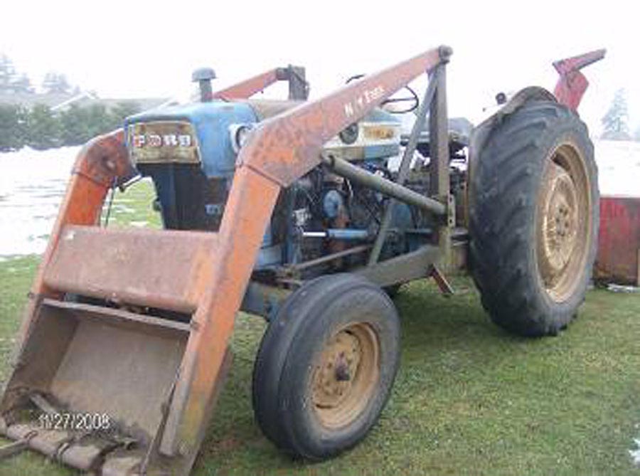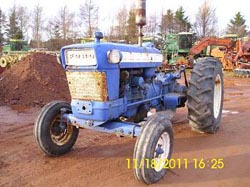 3000 Ford, 3 cylinder diesel, 42 HP, standard transmission, good tires, cab, no heater NOW JUNKING, sold cab & wheels