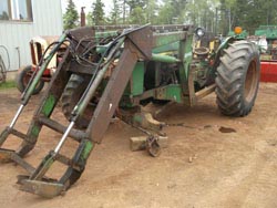 2130 JD, 2WD, open, motor bad, new steering 15.5 x 38, 145L, good manure fork, will separate, 439 engine, 1974, serial 127717L, 1R, 8 speed