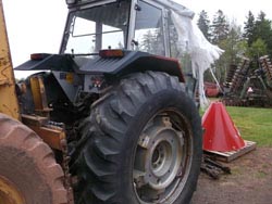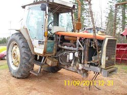 399 MF, cab, no motor, 18.4 x 38 = 30%, PA wheels, good radiator & fuel tank